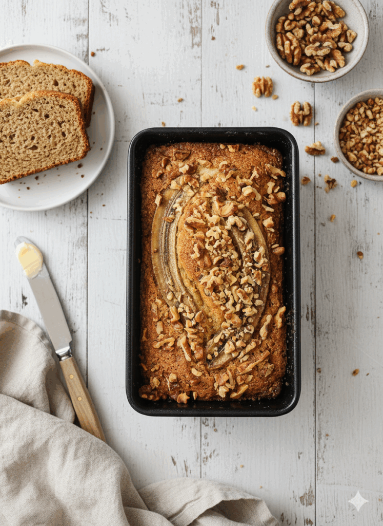 Combine wet and dry ingredients gently—do not overmix. Fold in chopped nuts.